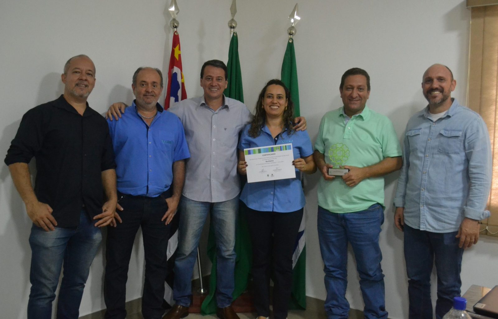 O diretor do Desenvolvimento Econômico, Agricultura e Meio Ambiente, Giancarlo Sanches Mestriner, e o diretor de Cultura e Turismo, Wilton Rosalino Borges, estiveram na Secretaria de Infraestrutura e do Meio Ambiente do Estado de São Paulo, na capital paulista, para receber a certificação do Programa Município VerdeAzul.
