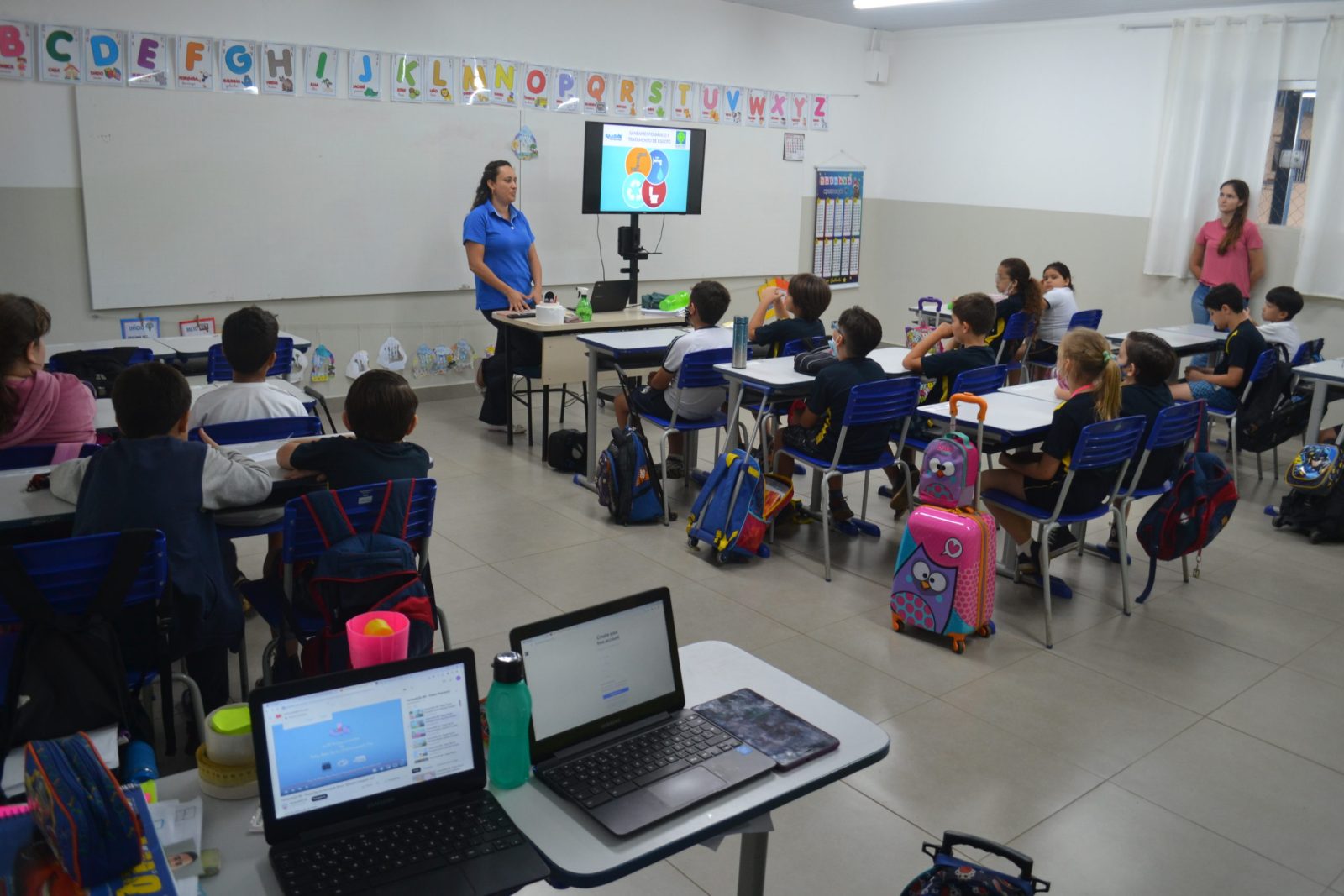 Estudantes do Colégio Zeta participaram hoje (10) de palestra realizada pelo Serviço Autônomo de Água, Esgoto e Meio Ambiente (SAAEMB) sobre a importância do saneamento básico e a necessidade de cuidar da água e evitar o desperdício.